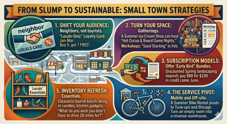 The secret to a sustainable small-town business isn’t just surviving the off-season; it’s pivoting to meet a different need. Here is how to transition from a “Tourist Destination” to a “Local Essential” when the temperature drops.