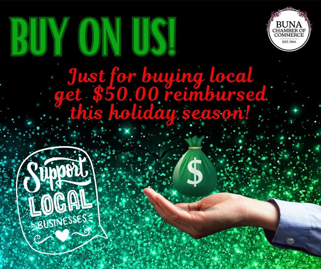 Get cash back for doing your holiday buying locally! Buy at any local Buna, TX business beginning on Small Business Saturday, November 30, 2024 and submit your receipts for your chance to be reimbursed!