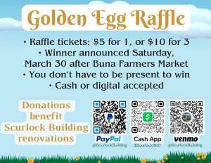 We’ll announce the Golden Egg raffle winner on social media on Saturday, March 30, after the close of the farmers market. And if you’re local, we’ll deliver the Easter gift basket to you! Or can save it for pickup at your leisure.