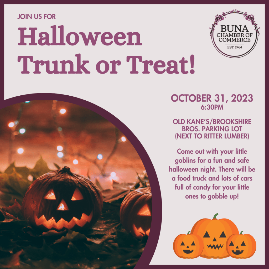 Come out with your little goblins for a fun and safe halloween night. There will be a food truck and lots of cars full of candy for your little ones to gobble up!