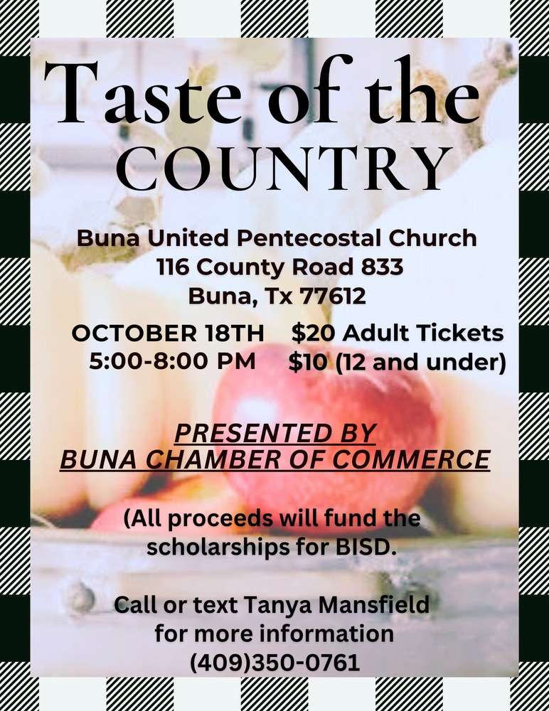 Join us for this fun event at the Buna United Pentecostal Church — where you can taste the many different cuisines from restaurants in our area! Tickets are $20 for Adults, $10 for children, 12 and under. Grab your tickets HERE.